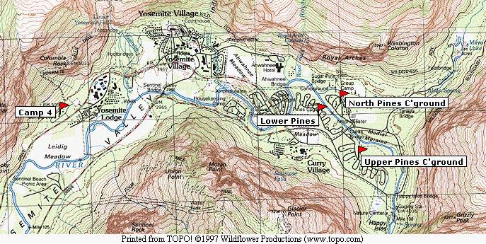 (Tamarack Flat, Porcupine Flat, White Wolf and Yosemite Creek) are