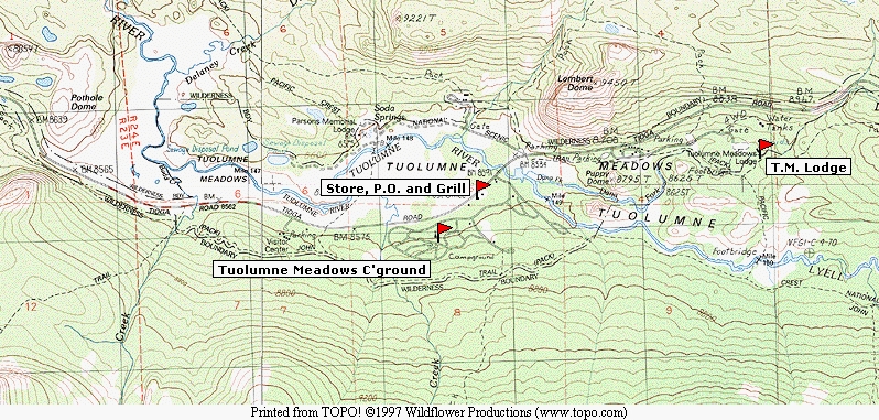 the left for a map of the Tuolumne Meadows area showing campgrounds