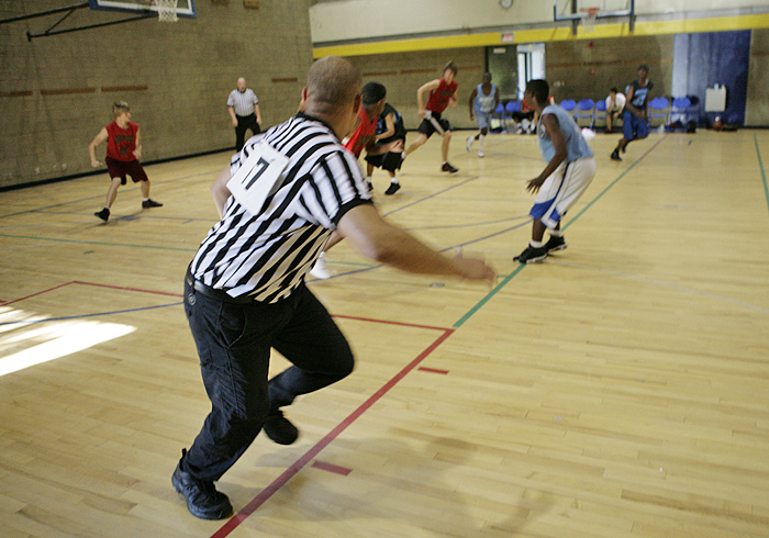 Bobby Pultz, another longtime counselor for the CCBOC, D-I official with the WAC and Big West conferences, gives positive feedback during games. |