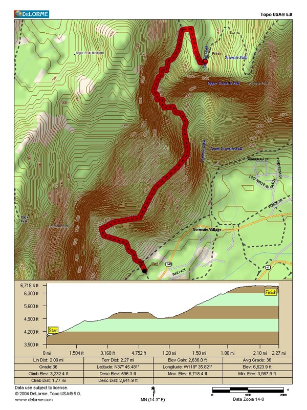 go to the base of Upper Yosemite Falls, but no further in my opinion.